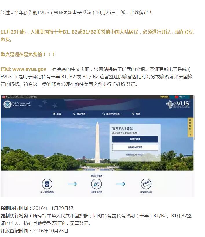 EVUS系统上线了:不登记不准入境美国!
