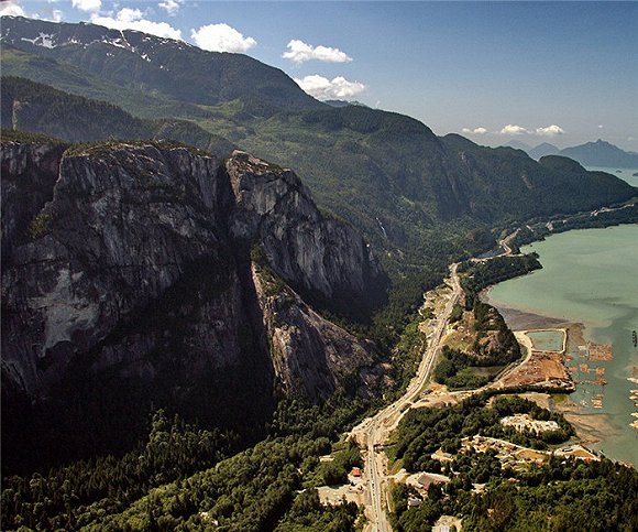 海天公蜿蜒而上直达2200英尺的世界级滑雪胜地山城惠斯勒,途中经过大自然在花岗岩山体上留下的那张名为“Chief”的面孔(图左)。