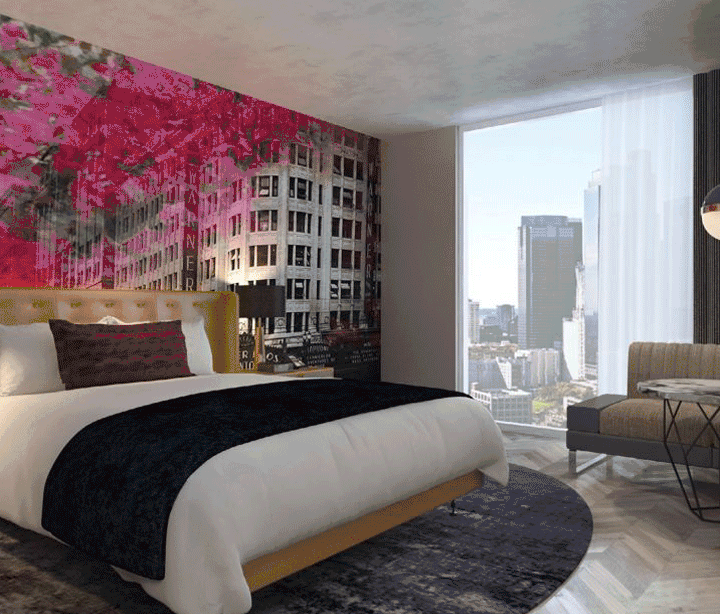 绿地洛杉矶INDIGO酒店大量使用花朵图案